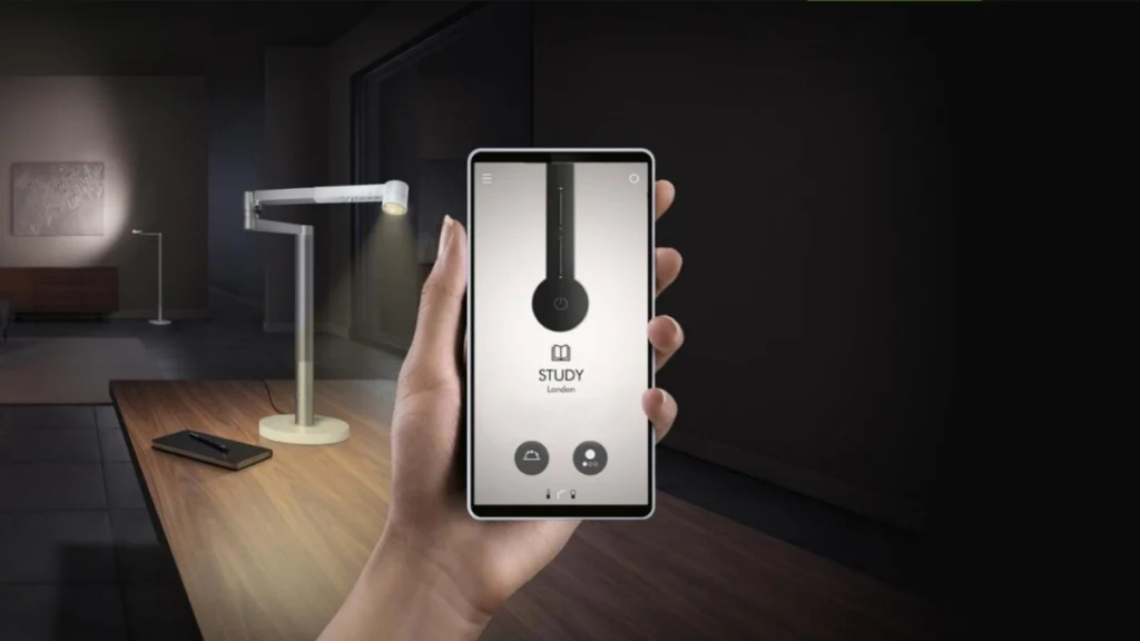 The Dyson Solarcycle Morph™ Desk is packed with smart technology, allowing users to control lighting settings via sensors and mobile app integration.